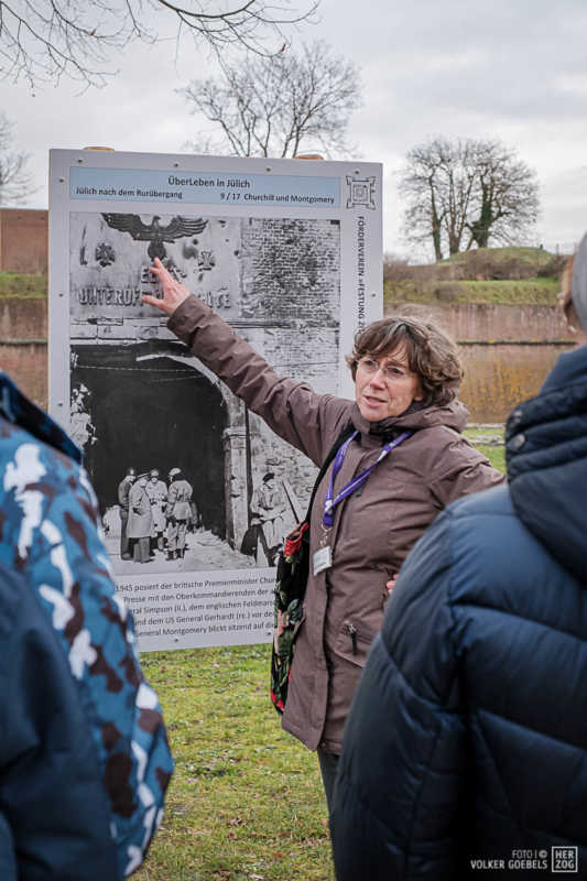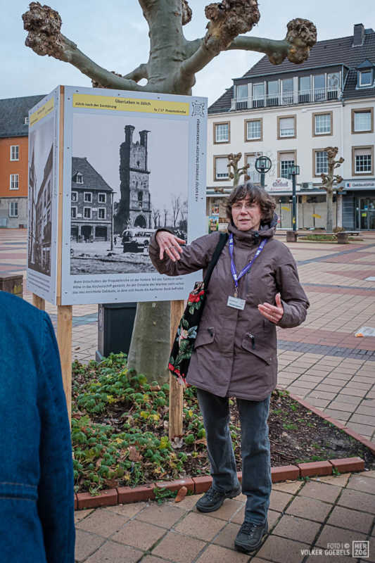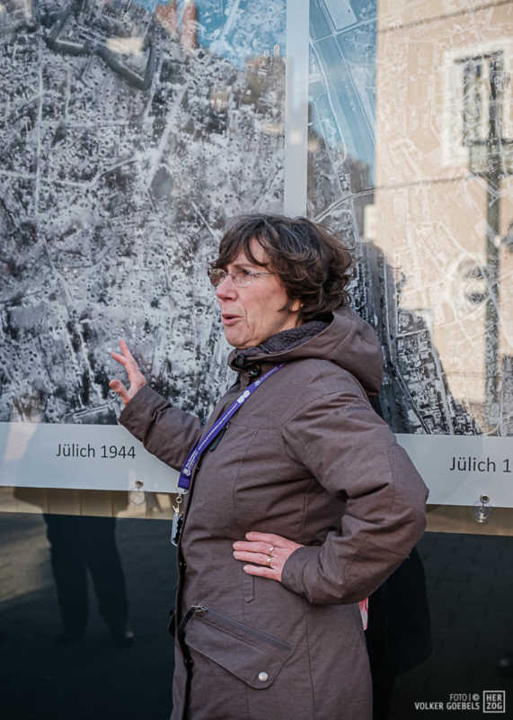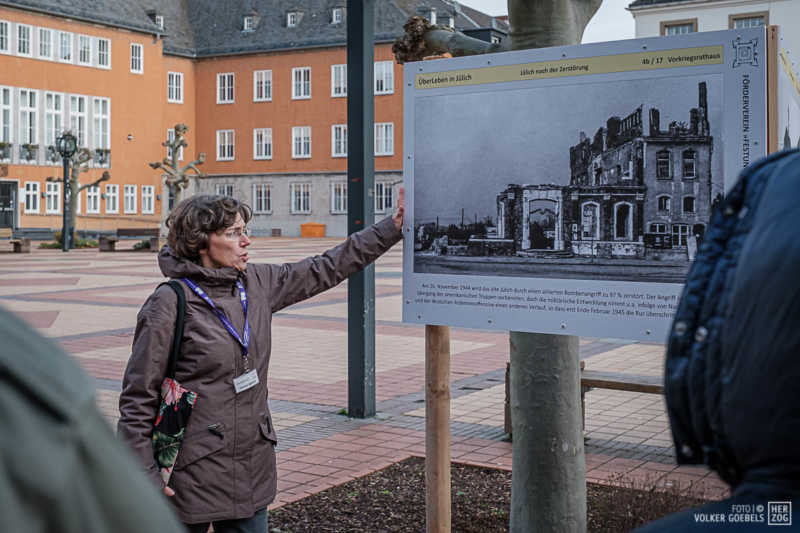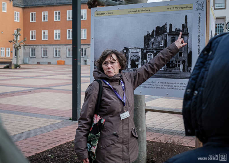 Begeistert ist der Förderverein Festung Zitadelle von der Resonanz zu ihrer Ausstellung „ÜberLeben“, bei der an neuralgischen Punkten der Innenstadt auf großen Fototafeln dargestellt ist, wie es in Jülich vor dem 2. Weltkrieg und nach dem 16. November 1944, dem Tag der nahezu vollständigen Zerstörung der Stadt aussah. Zwischen November und Mitte Februar hat der Verein sonntäglich Führungen angeboten und ist dabei auf großes Interesse gestoßen. Die Folge: Die Ausstellung „ÜberLeben“ geht bis zum 8. Mai, dem Tag, an dem sich die Kapitulation der Wehrmacht und Befreiung Deutschlands vom Nationalsozialismus, zum 75. Mal jährt, in die Verlängerung.