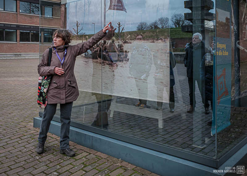 Möglich ist es natürlich auch, sich anhand der 50-seitigen Begleitbroschüre selbständig auf den Weg zu den 17 Stationen „ÜberLeben“ zu machen. Die Broschüre ist kostenfrei erhältlich und zwar an der Infotheke im Neuen Rathaus oder in der Stadtbücherei Jülich sowie zu den Öffnungszeiten des Museums Zitadelle (SA 14-17 Uhr, SO 11-17 Uhr) im Pavillon und im Südturm. Ab April hat der Info-Pavillon am Schlossplatz wieder regelmäßig geöffnet. Auch dort ist die Broschüre erhältlich.