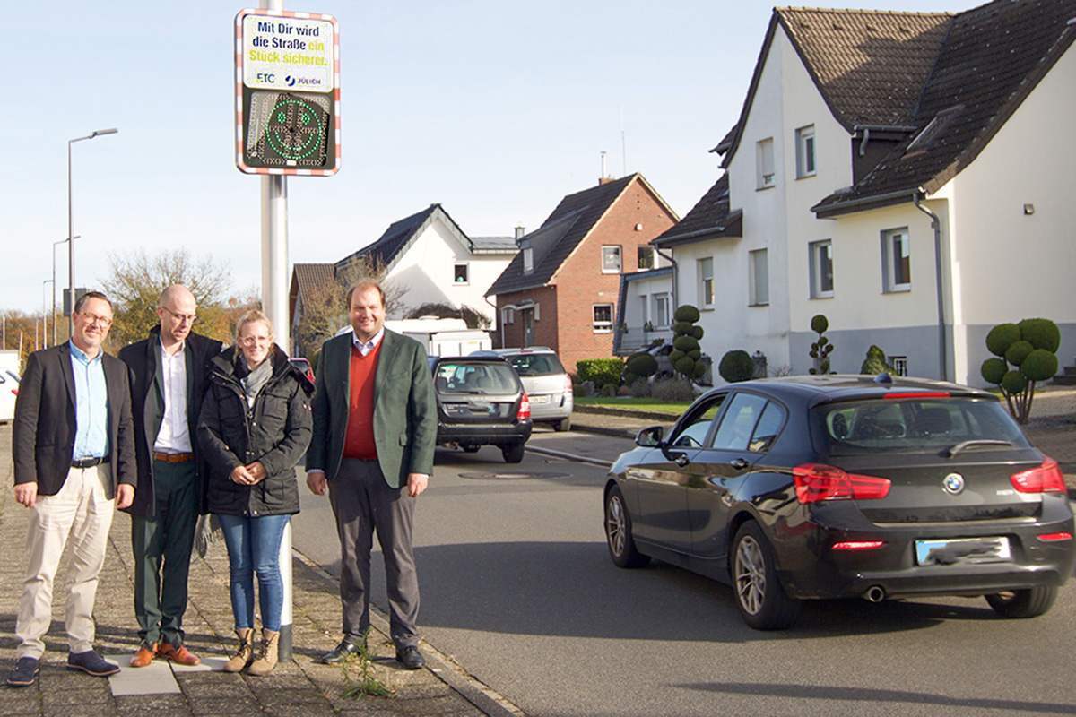Die beiden Geschwindigkeitsanzeiger sind die ersten fest installierten im Jülicher Stadtgebiet, erklärt Verena Minkenberg. Vier mobile Tafeln stehen der Stadt zusätzlich zur Verfügung, die nach Bedarf eingesetzt werden. Rund 2000 Euro kosten die Smiley-Tafeln, in diesem Fall finanziert durch das FZJ und ETC. Weitere Tafeln – und weitere Geldgeber – für ähnlich sensible Verkehrssituationen zum Beispiel vor Schulen und Kindergärten wäre sicherlich schön, waren sich alle Beteiligten einig.