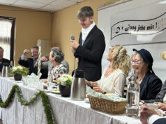„Das Herz des Platzes soll nun die neue Infotafel sein“, eröffnete Andreas Nogga, Vorstandsmitglied des Dorfvereins Zukunft Kirchberg e.V., die von Sonne und Regen durchzogene Veranstaltung. Gemeinsam mit zahlreichen Gästen gab die Einweihung des neu erweiterten Informations- und Rastplatzes Gelegenheit zum Austausch mit An-Grillen. Aber vor allem war dies auch die Gelegenheit, allen Beteiligten ihren Dank auszusprechen: „Es war schön und interessant, an der Tafel zu arbeiten, weil wir viel über die Geschichte der Bahn gelernt haben. Das ging nur, weil wir enorm viele Helfer hatten, mit denen uns die Mitglieder des Eisenbahn-Amateur-Klubs Jülich in Kontakt gebracht hatten“, sagte Nogga, dankbar. Neben Guido von Büren vom Museum Zitadelle, Susanne Richter vom Stadtarchiv Jülich und Klaus Wölfle vom Eisenbahn-Amateur-Klub dankte er auch den anderen Helfern, auch aus dem Dorfverein, für ihre Unterstützung.