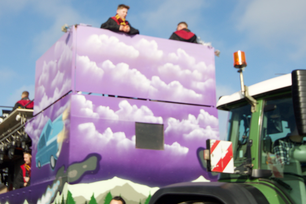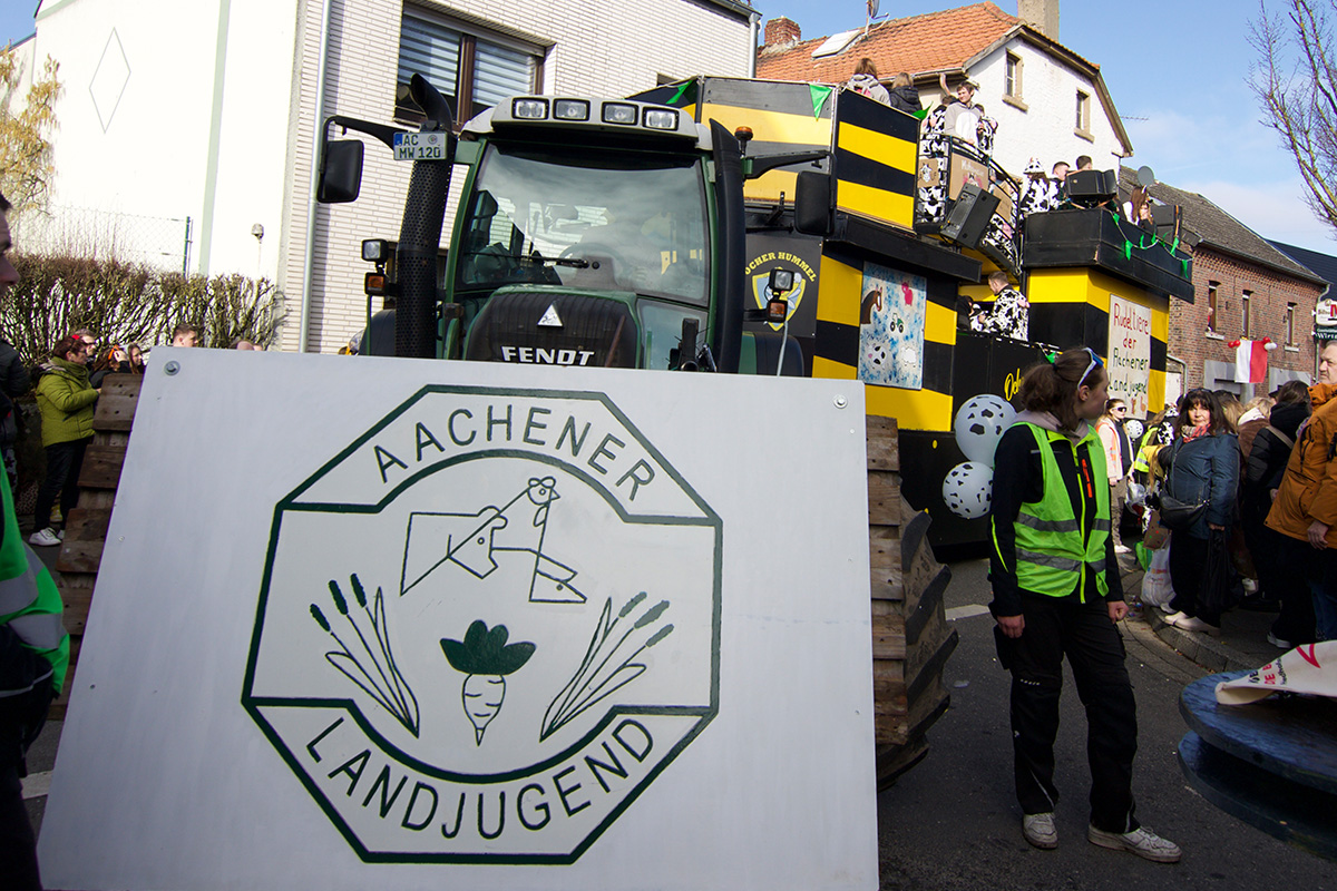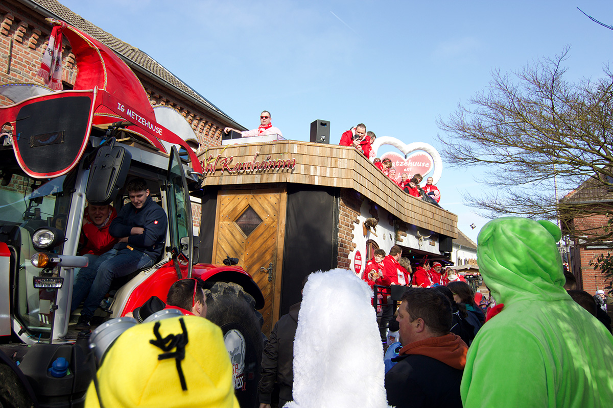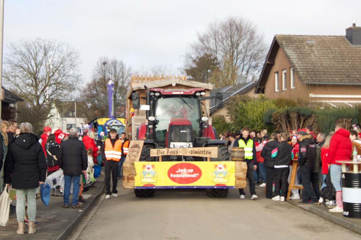 Angesichts der Kürze der Wege ziehen die Wagen, von denen manche fahrbaren Kunstwerken ähnelten, gleich zweimal durch das Dörfchen, das einmal im Jahr – immer am Sonntagmittag – zum Mittelpunkt des jecken Treibens im Jülicher Land avanciert.