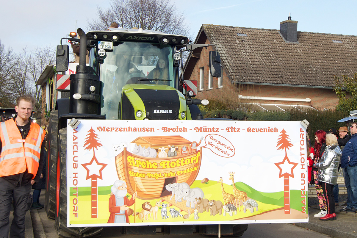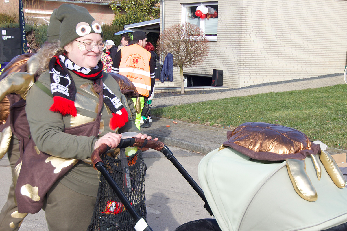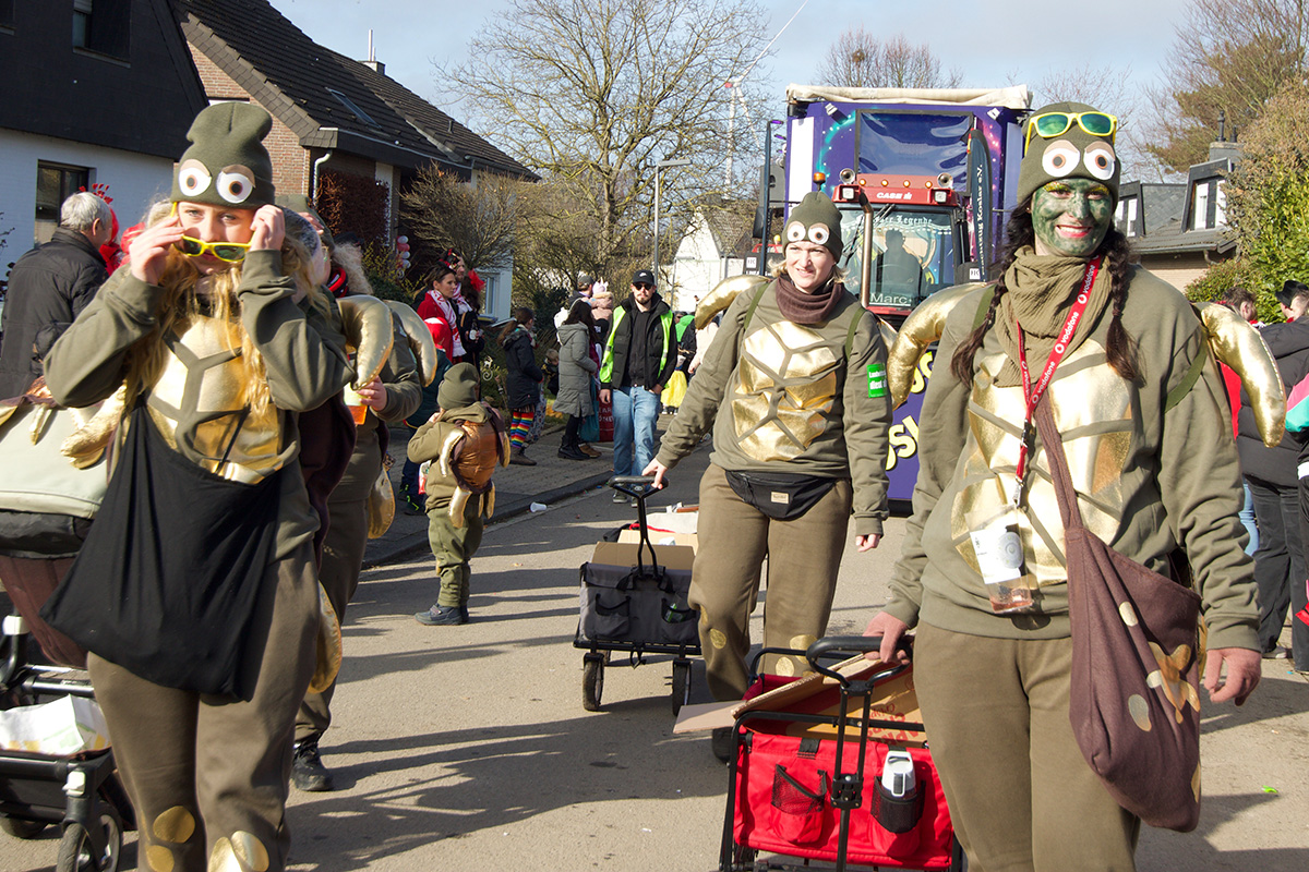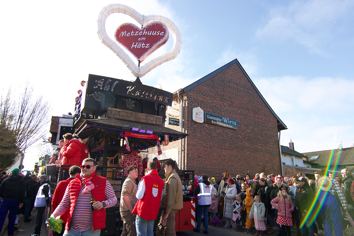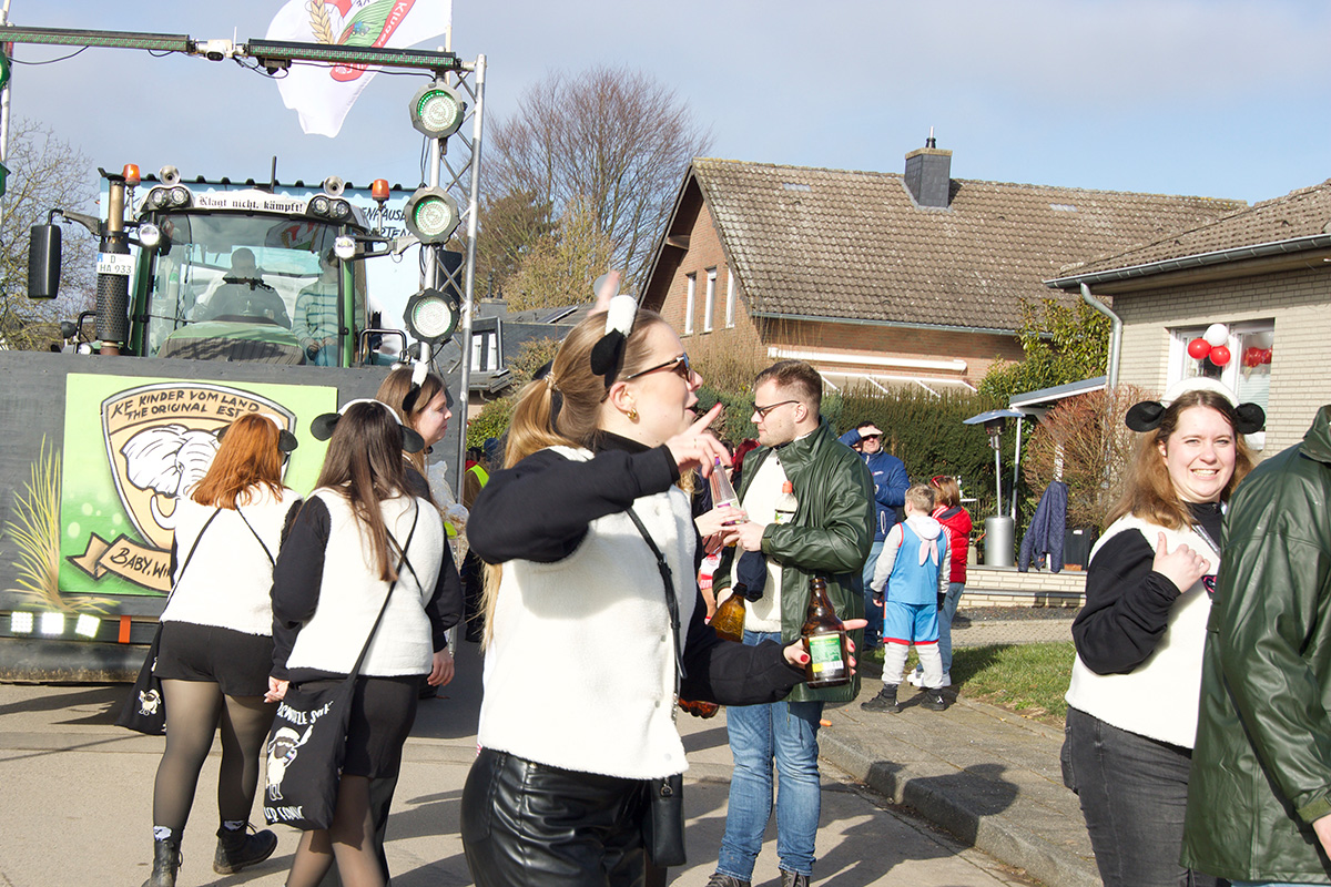 Was einst als „Vorspiel“ zum alljährlichen Straßenkarneval begann, hat sich längst etabliert und steht bei vielen Jecken ganz dick im närrischen Kalender. Ob am Straßenrand oder mittendrin im „Zoch“, so manch einer nimmt eine längere Anreise auf sich. Glücklich, wer zu Fuß oder mit dem Fahrrad kommen kann, denn Parkplätze rund um das kleine Dorf sind rar. Doch das störte hier niemanden: Bei strahlendem Sonnenschein und prächtiger Stimmung feierten, tanzten, schunkelten die bunt kostümierte Menge.