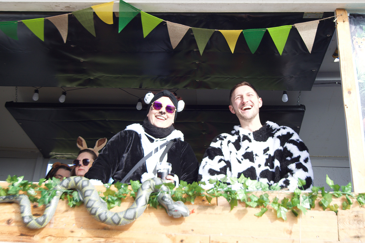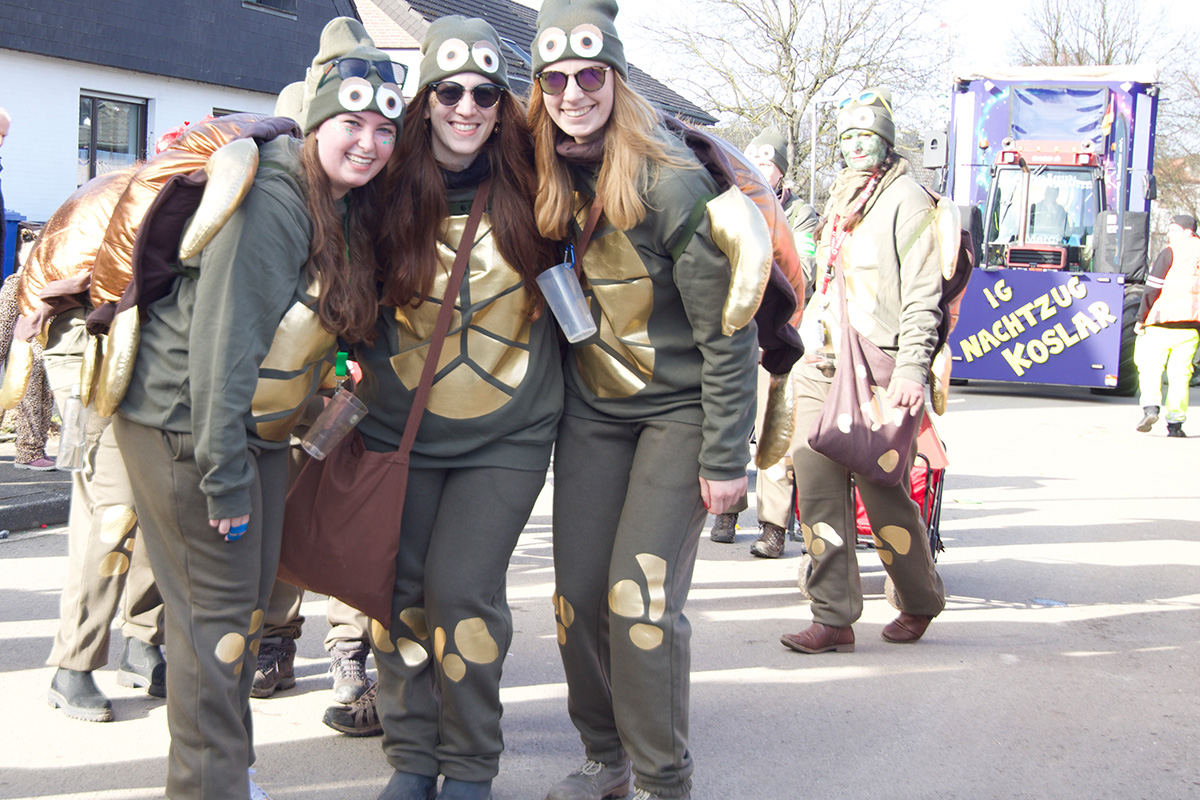 Wenn vermeintlich gefräßige T-Rexe einträchtig mit Kühen und anderem Getier über die Straßen ziehen, Ärztinnen und Malermeister am Acker entlang tanzen und an der Prämienstraße einfach kein Durchkommen mehr ist, dann ist klar: „Meetzehuuse Alaaf!“ lautet die Begrüßung des Tages.