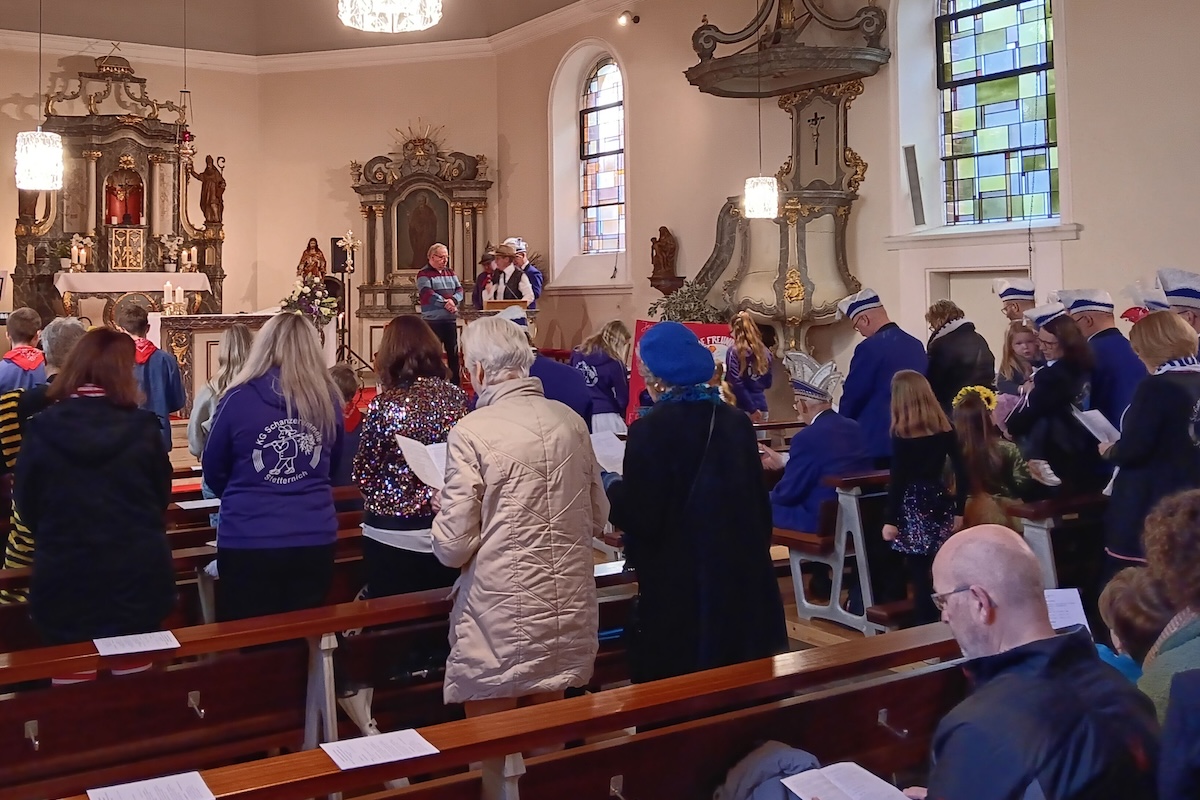 Nicht nur die Sprache war außergewöhnlich. Im Haus Gottes blieben an diesem Sonntag selbst zum Gebet Hüte und Narrenkappen auf dem Kopf. Nachdem man gemeinsam das Schänzje-Leed gesungen hatte, wurde sich karnevalistisch eingeschunkelt. Mit „en unserem Veedel“ wurde nicht nur der Karneval besungen, sondern auch die christliche Botschaft des Zusammenhalts, „denn he hält mer zesamme, ejal wat och passeet“.