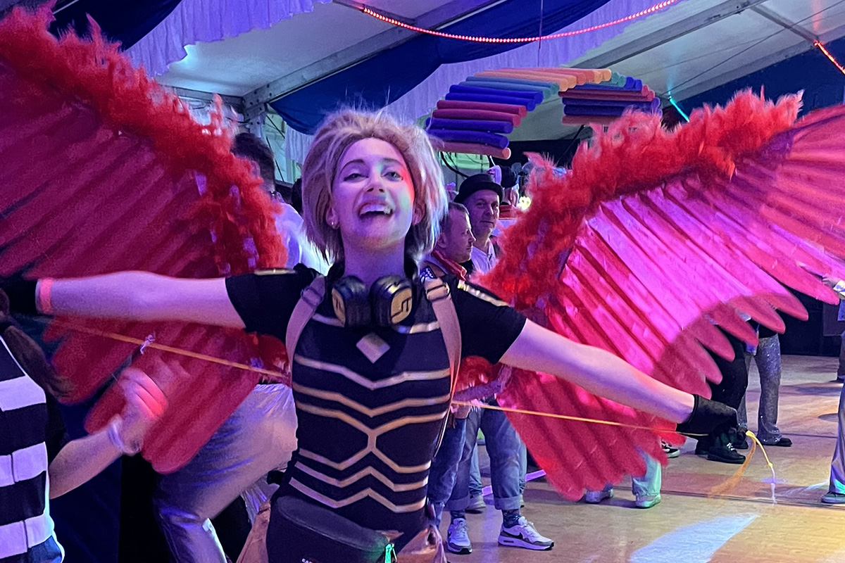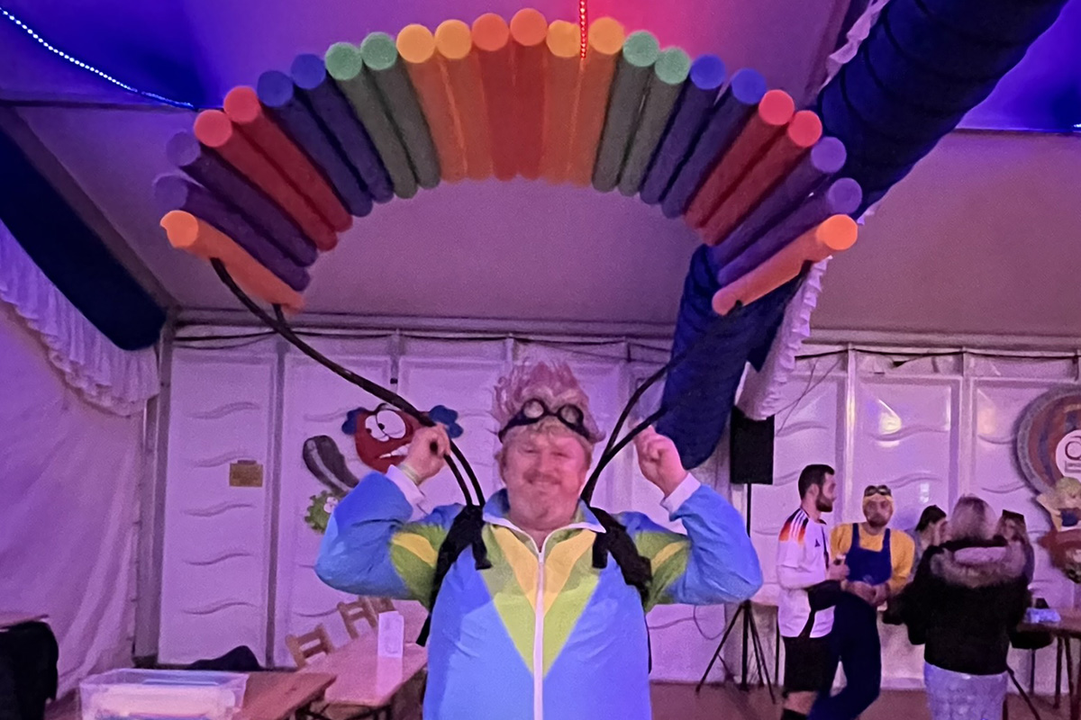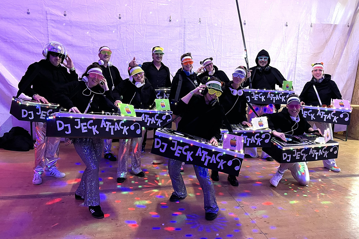 Im Festzelt am Sandweg feierten die Narren mit der KG Schnapskännchen die Jeck & Doll-Kostümparty. Die Gäste waren gut gelaunt, und es gab viele einfallsreiche Einzel-, Paar- und Gruppen-Kostüme: Ernie und Bert, Donald Trump, bunte Clowns, Minions und Charaktere der Mario-Kart-Welt, Paradiesvögel und Karnevalsmäuse, Piraten, Fußballer, Cowboys und Rocker tummelten sich im Festzelt und auf der Tanzfläche. Ein Paar stellte „Mein Lieblingsgetränk: Kölsch und Aperol“ zur Schau. Außerhalb des Wettbewerbs sorgten die dunklen Feen Maleficiant für geheimnisvolles Flair. Die Fußball-Herren stellten ganz in weiß gekleidet mit ihren überlangen Zylindern einen besonderen Blickfang dar.