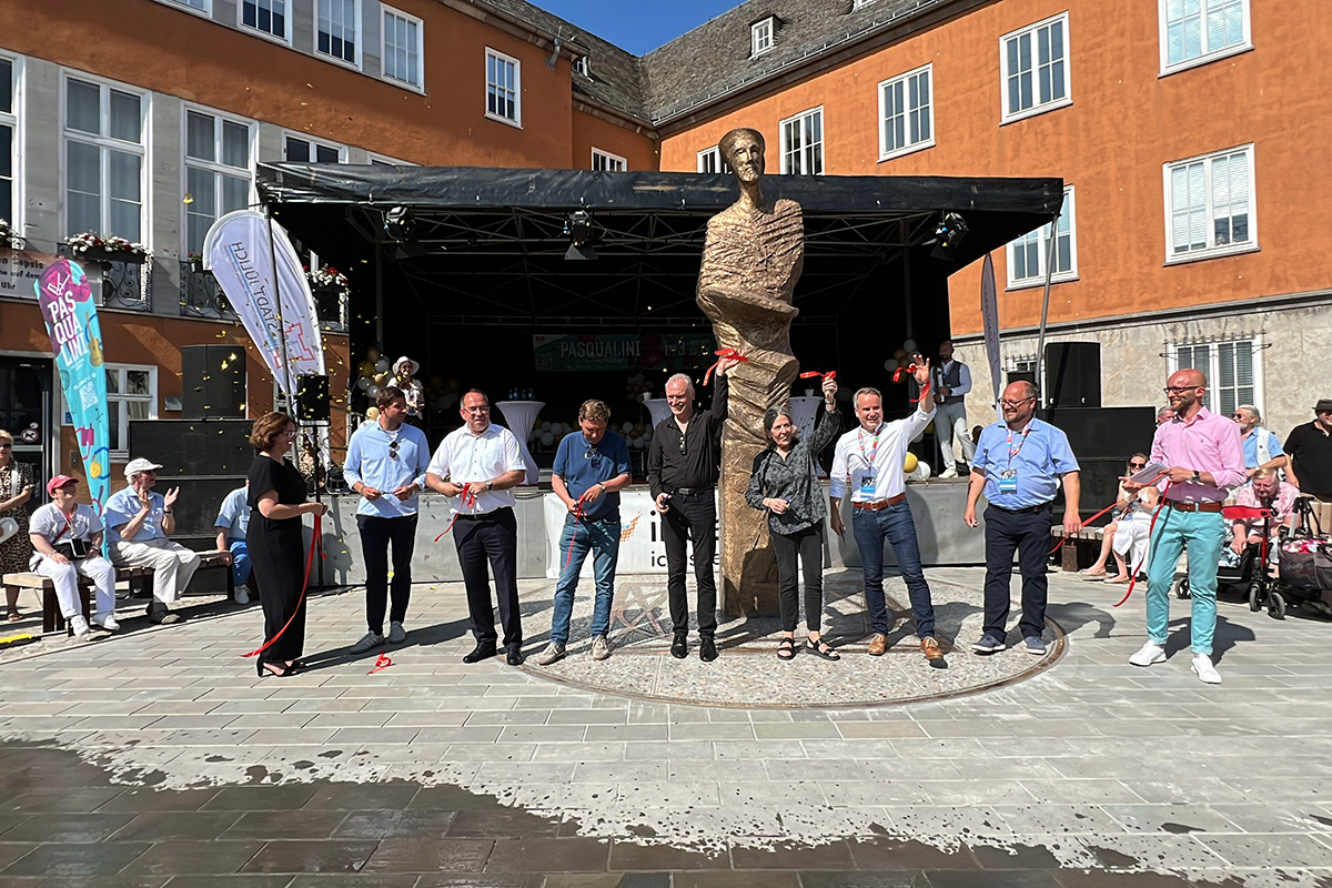 Bereits im März hat die Jülicher Leitfigur, der 4,50 Meter große und 1,3 Tonnen schwere Pasqualini, „Posten“ direkt vor dem Kreishaus bezogen. Ihm und dem fertiggestellten Marktplatz wurden im Juni ein großes Fest gegeben.