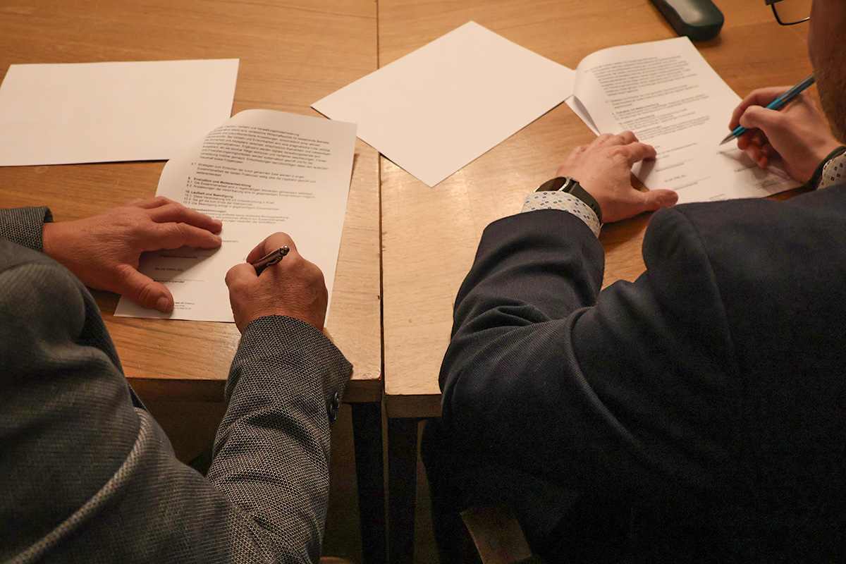 Mit Unterschrift besiegelt: Die Kooperationsvereinbarung zwischen CDU und UWG JÜL. Foto: Dorothée Schenk