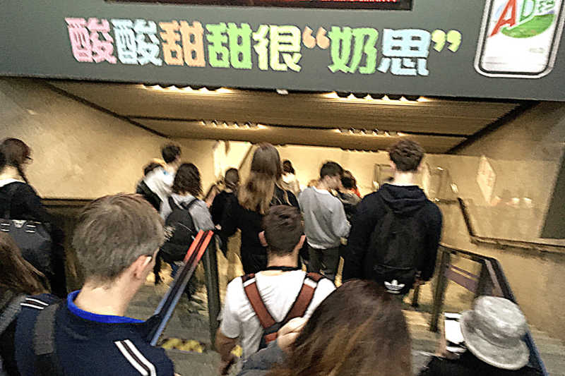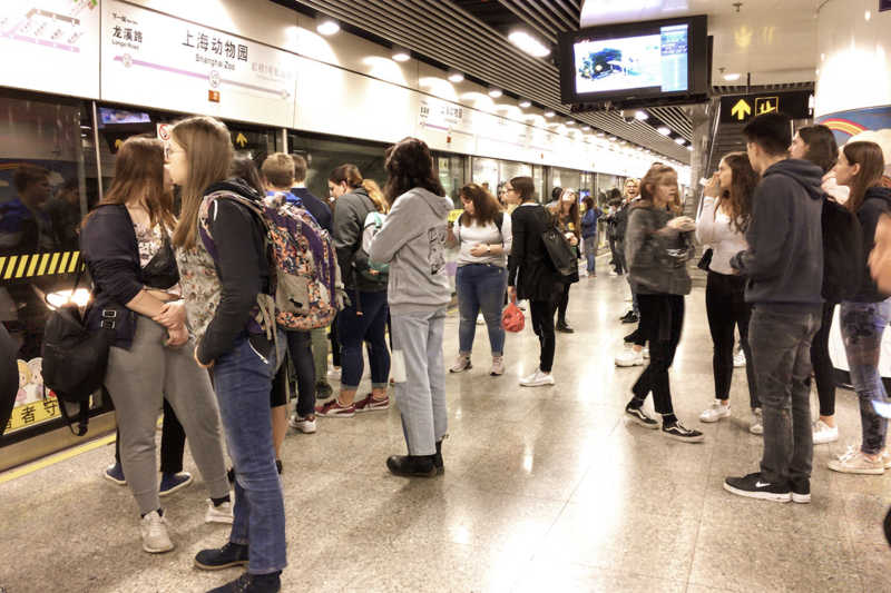 Nach einem letzten chinesischen Frühstück in Taicang ging es mit dem Bus nach Shanghai, in eine Metropole mit 25 Millionen Einwohnern (Taicang 1 Million). Trotz vieler Menschen und Fahrzeugen auf Straßen und in den U-Bahnen zeigte Shanghai sich bei Weitem nicht so hektisch, wie zuvor erwartet. Dennoch war besondere Aufmerksamkeit der Schülerinnen und Schüler auf dem Weg mit der U-Bahn in den Zoo von Shanghai angesagt, damit keiner auf dem Weg verloren ging. Hier konnten in einem großen abwechslungsreich bepflanzten Areal von frei fliegenden Schmetterlingen bis zu den großen Pandas, die natürlich unser Ziel waren, die bedrohte Tierwelt Chinas bewundern.