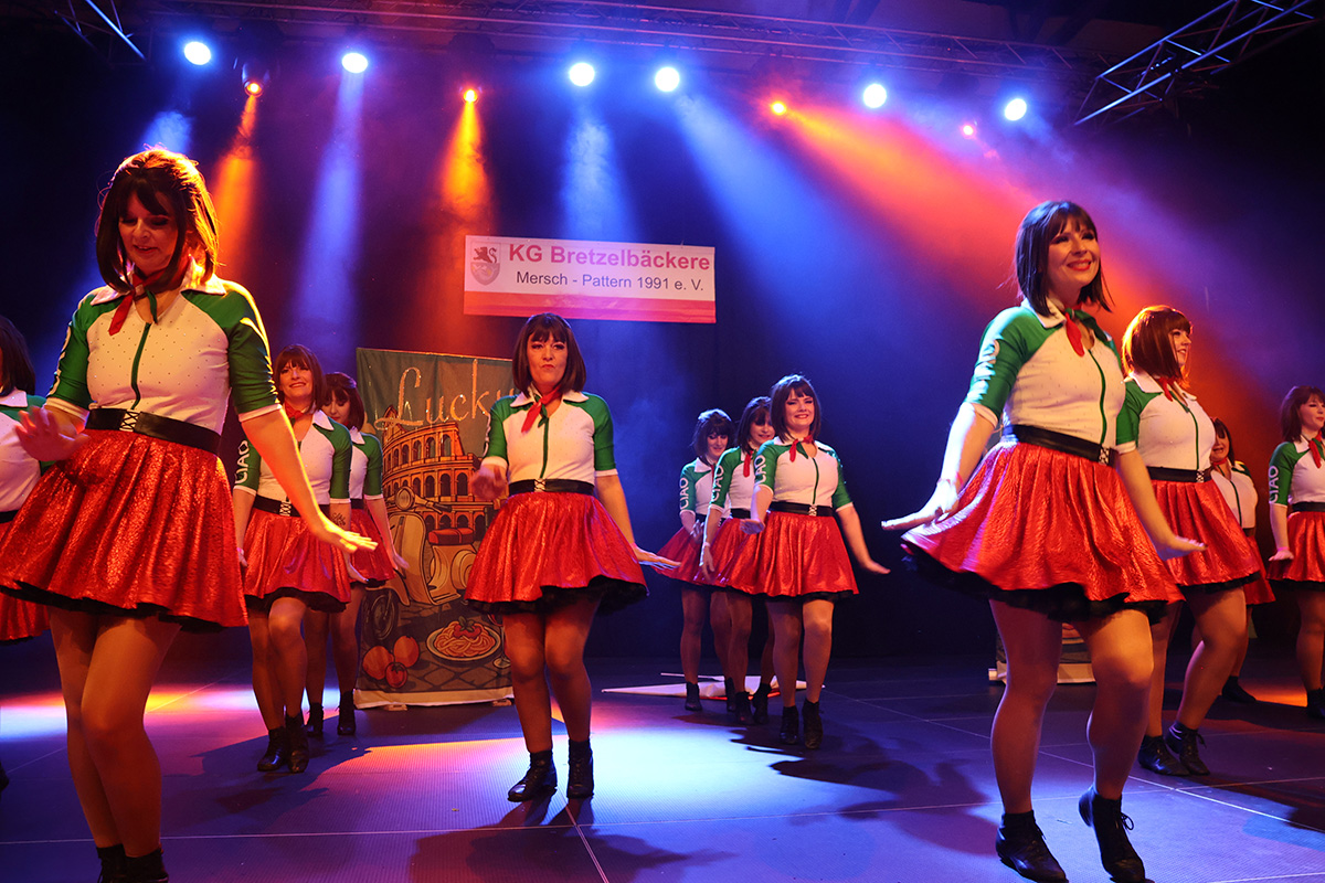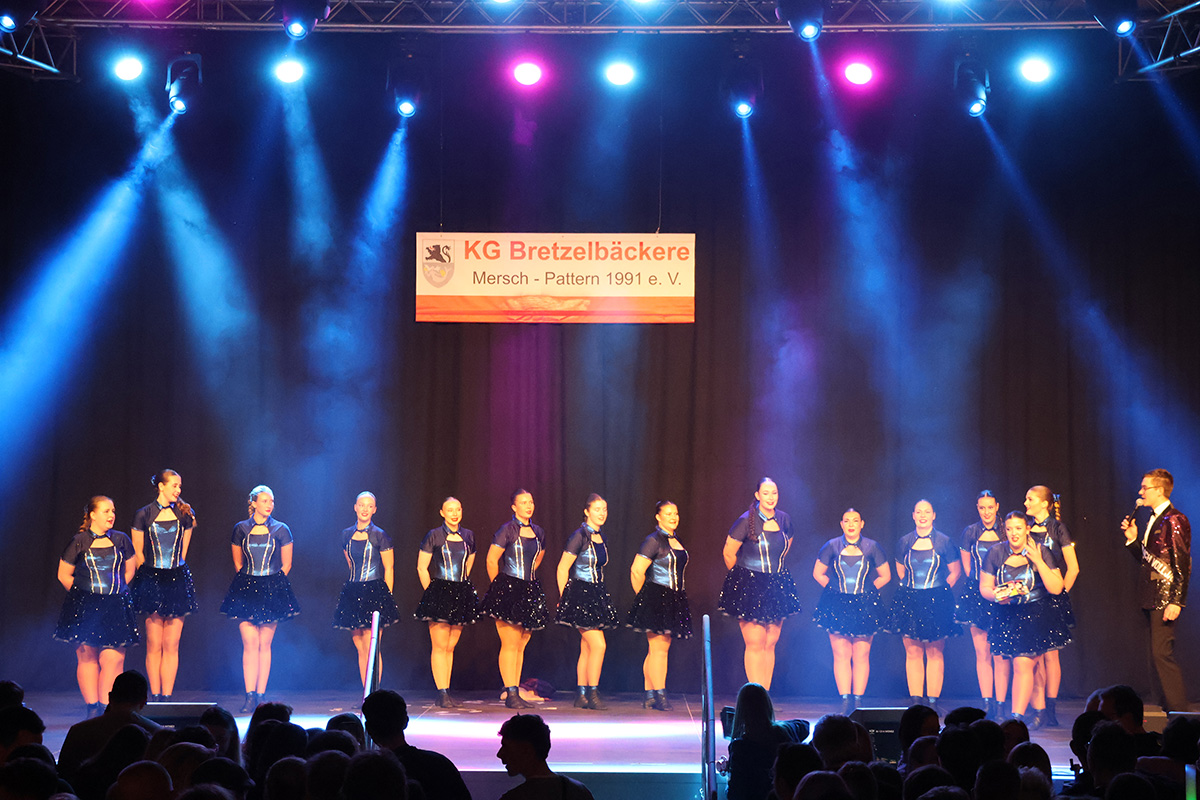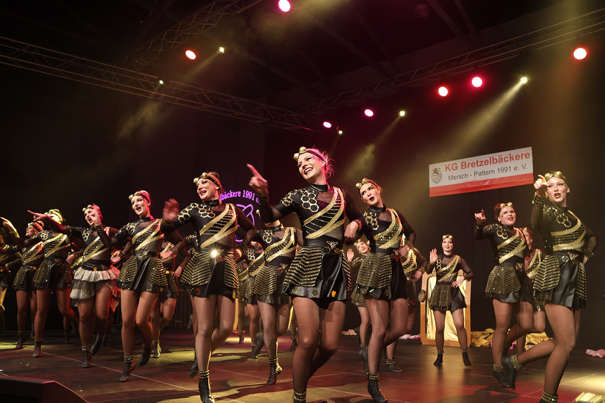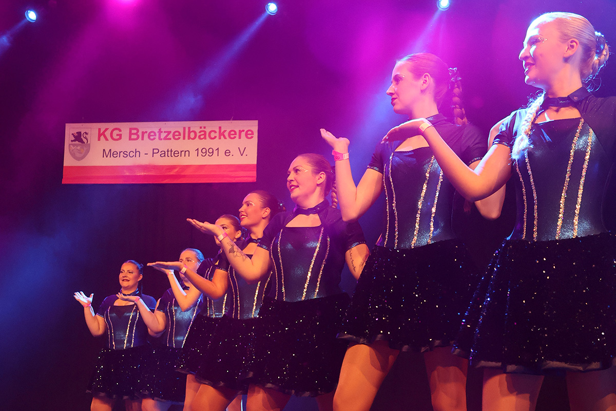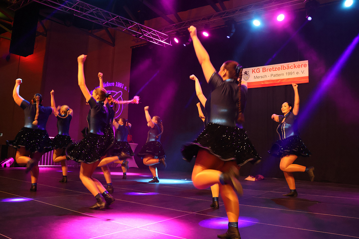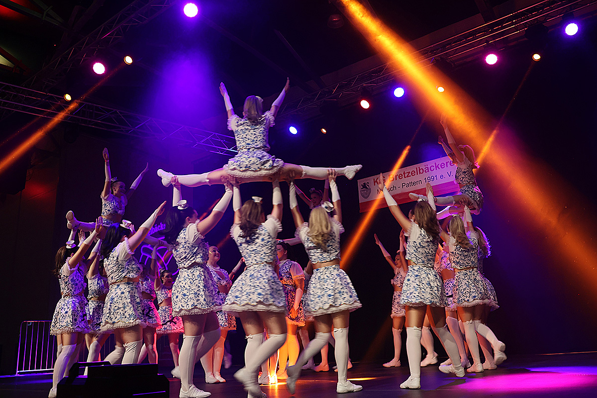 Mitreißende Choreografien, aufwendige Kostüme und eine volle Muschel. Etwa 900 Menschen kamen laut Pressewart am letzten Freitag in der Muschel zusammen, um karnevalistisch dem Tanz und der Musik zu huldigen. Tanzgruppen aus der ganzen Region wetteiferten zum vierten Mal in der Kulturmuschel im Jülicher Brückenkopf-Park um das Wohlwollen der Jury und den Wanderpokal der KG Bretzelbäckere. Moderiert wurde der Abend von Jan Schiffer, Präsident der Mersch-Patterner Karnevalsgesellschaft. Insgesamt waren elf Showtanzgruppen gemeldet, die ihre Startreihenfolge zu Beginn des Abends gemeinsam auslosten. Krankheitsbedingt musste die Penelopecrew von der KG Maiblömche aus Lich Steinstraß absagen, ebenso die Starlights, die als Eisbrecher angekündigt waren. Die Moonlights, bestehend aus den elf bis sechzehnjährigen Tänzerinnen der Gastgeber, sorgten jedoch für einen gelungenen Auftakt.