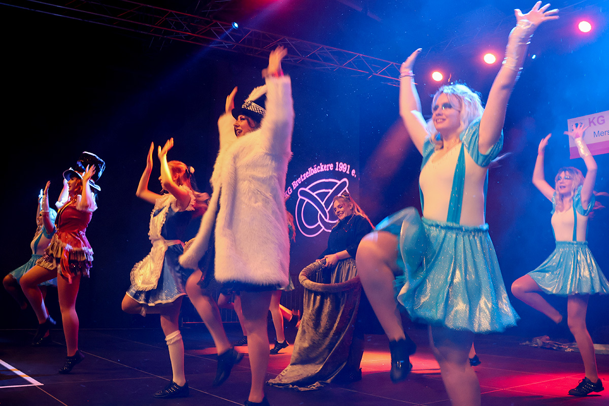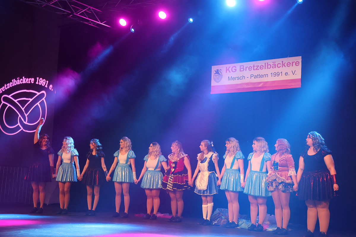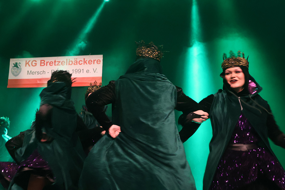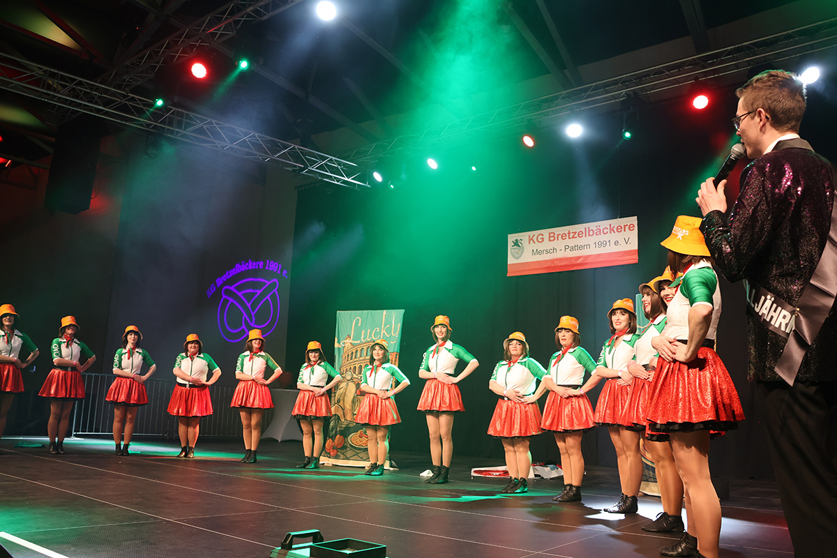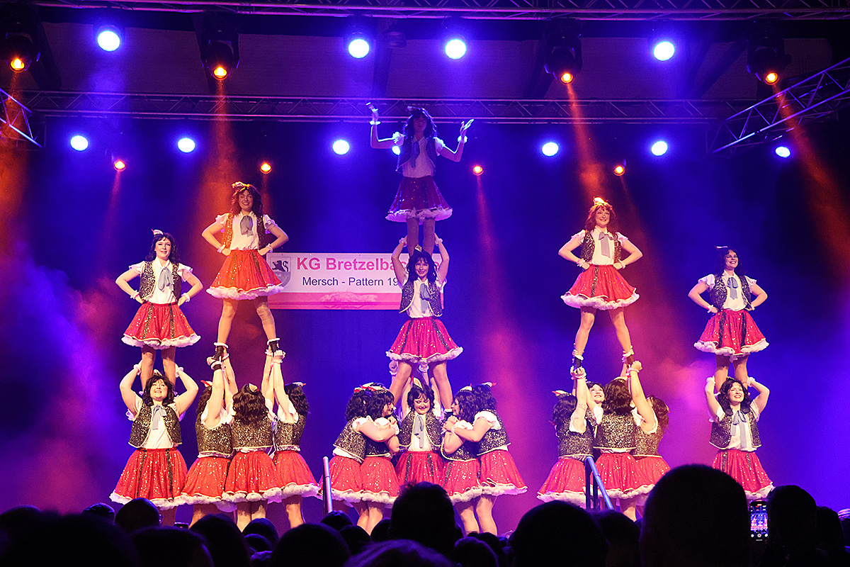 Mitreißende Choreografien, aufwendige Kostüme und eine volle Muschel. Etwa 900 Menschen kamen laut Pressewart am letzten Freitag in der Muschel zusammen, um karnevalistisch dem Tanz und der Musik zu huldigen. Tanzgruppen aus der ganzen Region wetteiferten zum vierten Mal in der Kulturmuschel im Jülicher Brückenkopf-Park um das Wohlwollen der Jury und den Wanderpokal der KG Bretzelbäckere. Moderiert wurde der Abend von Jan Schiffer, Präsident der Mersch-Patterner Karnevalsgesellschaft. Insgesamt waren elf Showtanzgruppen gemeldet, die ihre Startreihenfolge zu Beginn des Abends gemeinsam auslosten. Krankheitsbedingt musste die Penelopecrew von der KG Maiblömche aus Lich Steinstraß absagen, ebenso die Starlights, die als Eisbrecher angekündigt waren. Die Moonlights, bestehend aus den elf bis sechzehnjährigen Tänzerinnen der Gastgeber, sorgten jedoch für einen gelungenen Auftakt.