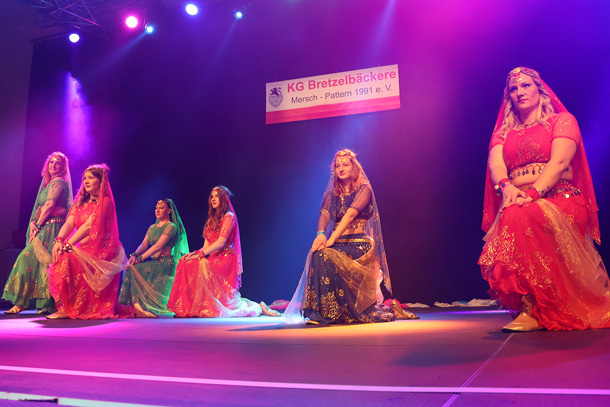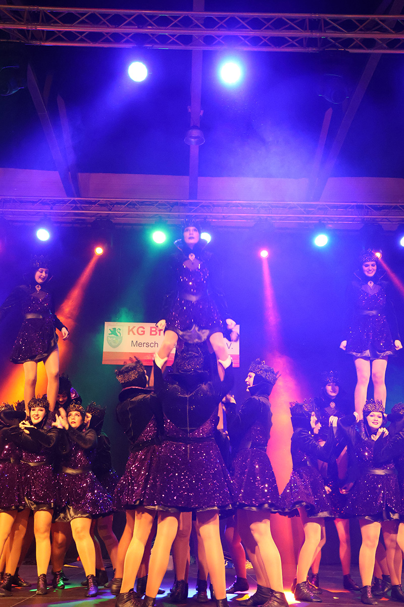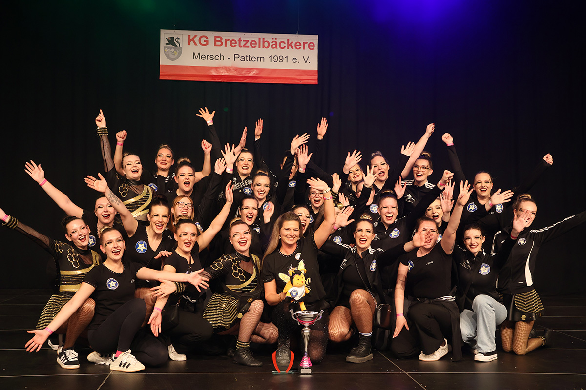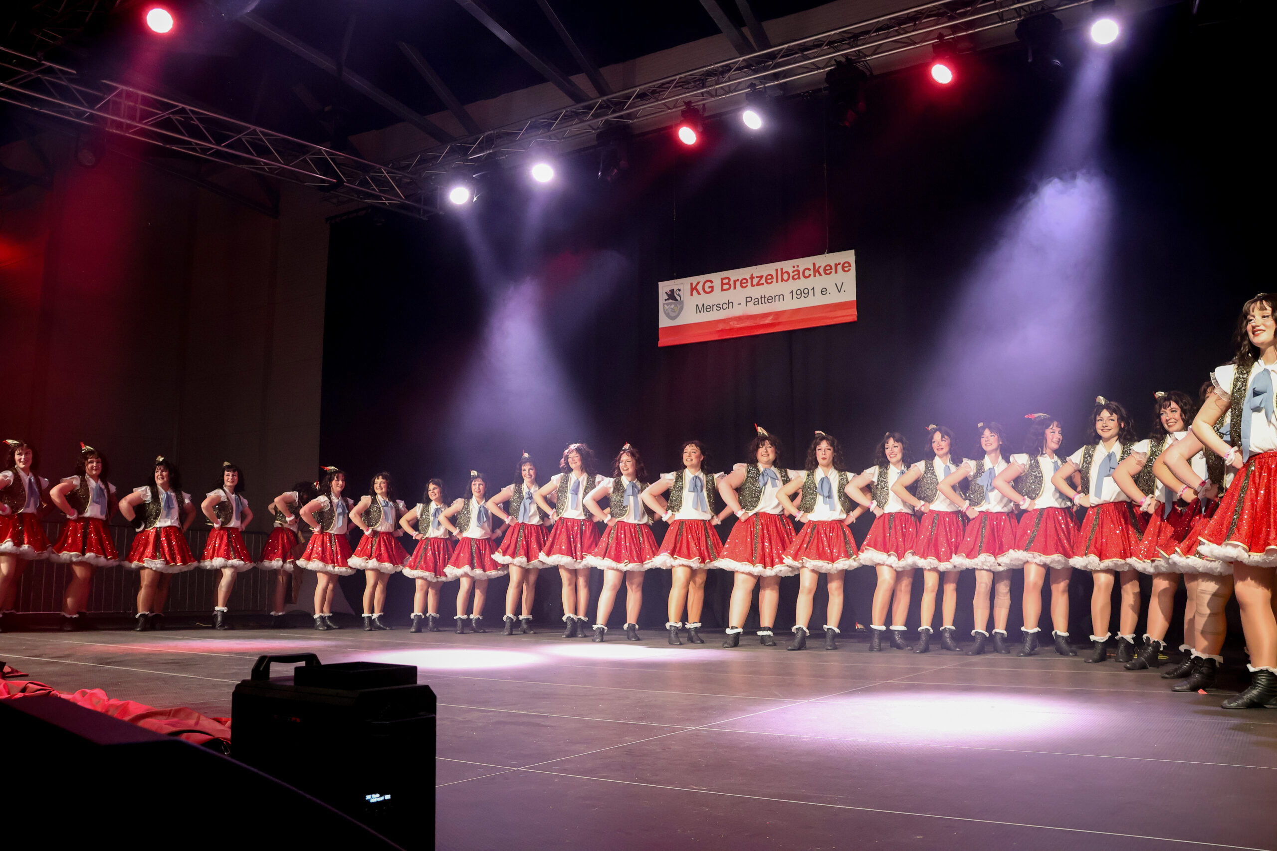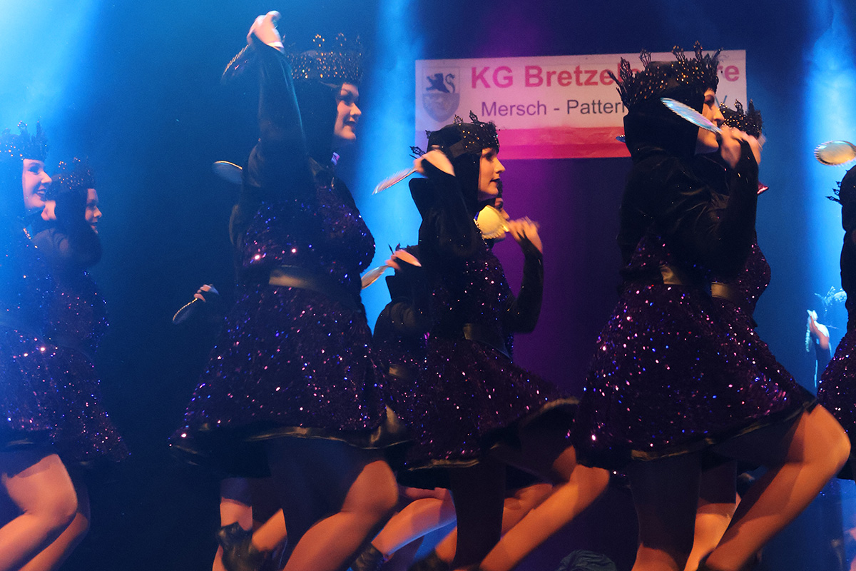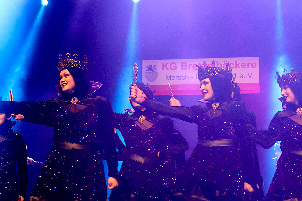 Mitreißende Choreografien, aufwendige Kostüme und eine volle Muschel. Etwa 900 Menschen kamen laut Pressewart am letzten Freitag in der Muschel zusammen, um karnevalistisch dem Tanz und der Musik zu huldigen. Tanzgruppen aus der ganzen Region wetteiferten zum vierten Mal in der Kulturmuschel im Jülicher Brückenkopf-Park um das Wohlwollen der Jury und den Wanderpokal der KG Bretzelbäckere. Moderiert wurde der Abend von Jan Schiffer, Präsident der Mersch-Patterner Karnevalsgesellschaft. Insgesamt waren elf Showtanzgruppen gemeldet, die ihre Startreihenfolge zu Beginn des Abends gemeinsam auslosten. Krankheitsbedingt musste die Penelopecrew von der KG Maiblömche aus Lich Steinstraß absagen, ebenso die Starlights, die als Eisbrecher angekündigt waren. Die Moonlights, bestehend aus den elf bis sechzehnjährigen Tänzerinnen der Gastgeber, sorgten jedoch für einen gelungenen Auftakt.
