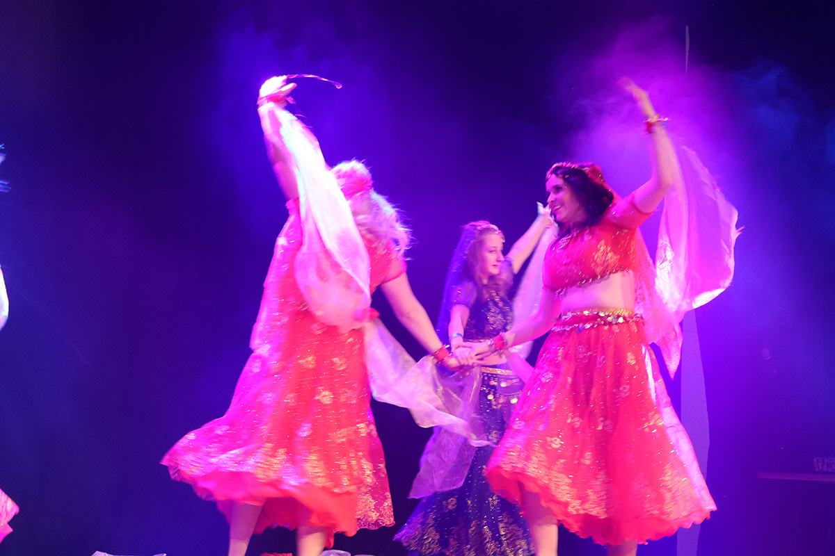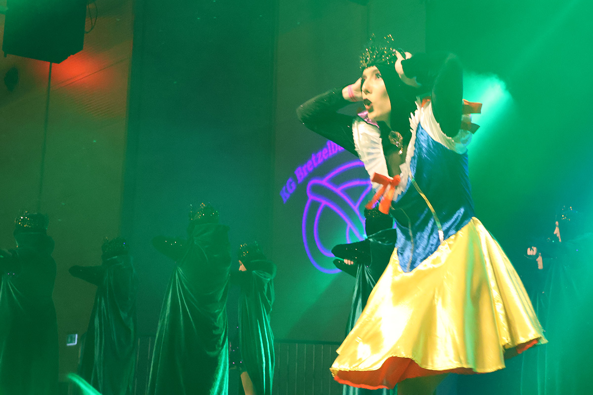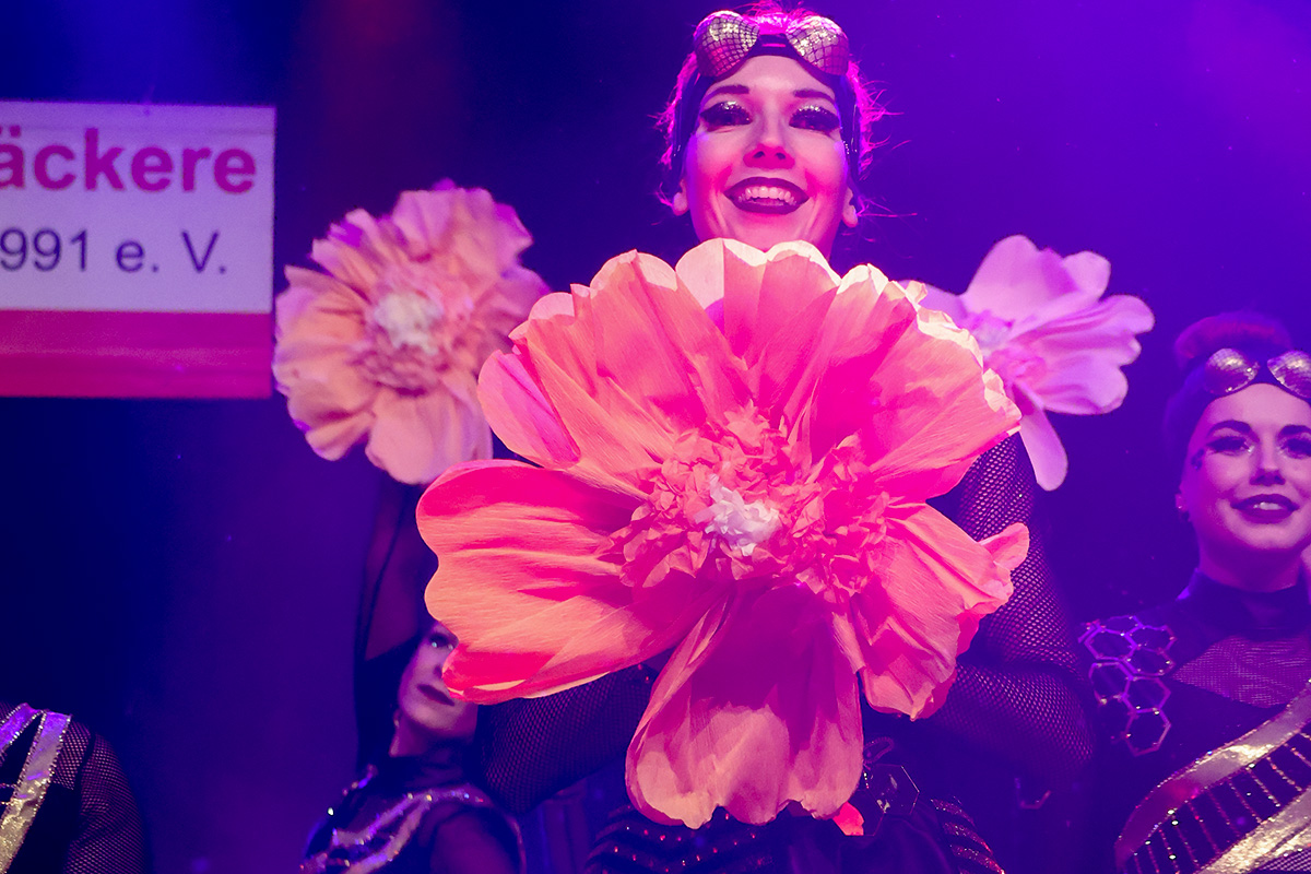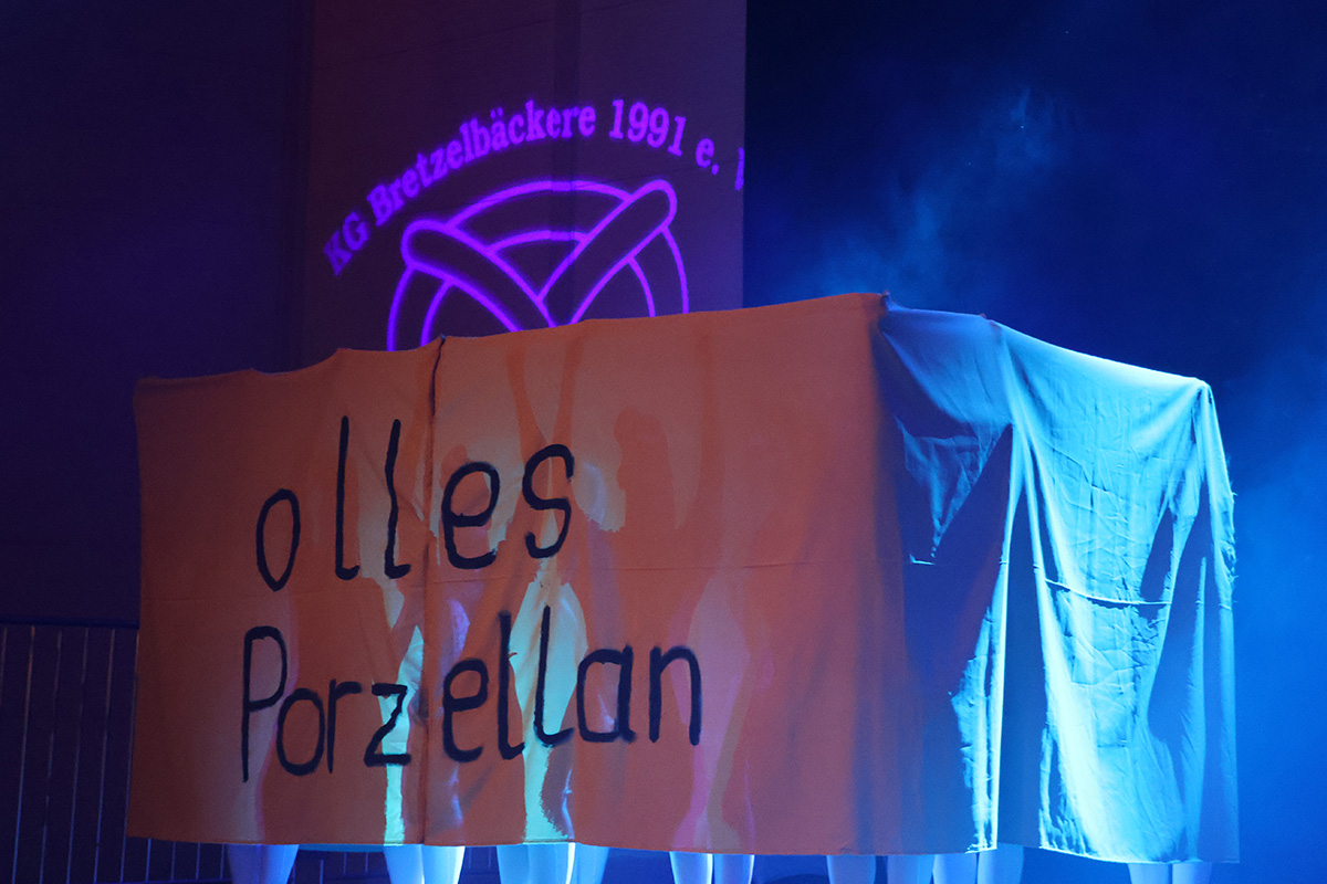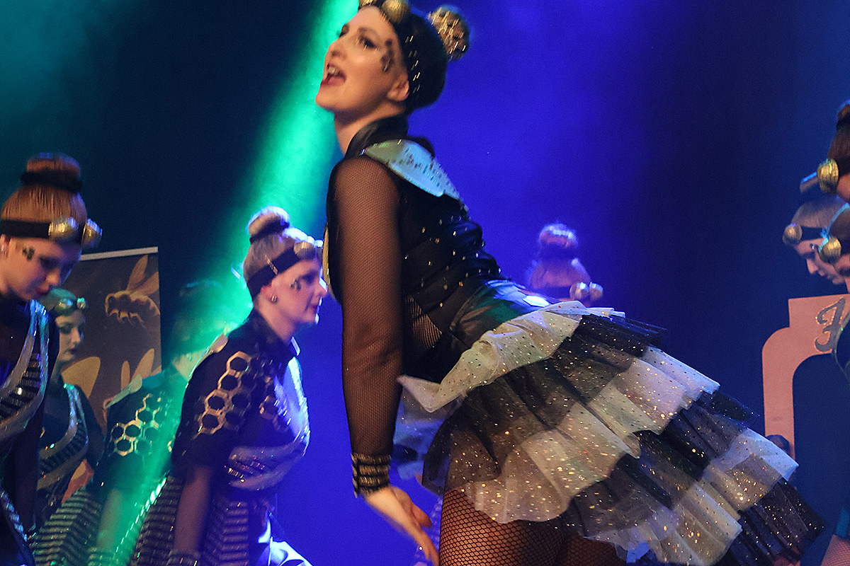 Obwohl die Däppstreet Nudeln und die Plattfööss sich unabhängig voneinander von unseren vielleicht fleißigsten tierischen Helferinnen, den Bienen, inspiriert fühlten und so eine gewissen Ähnlichkeit bei den Kostümen bestand, war es ein tänzerisch und musikalisch sehr abwechslungsreicher Abend. Die Show Dance Company der KG Rot-Weiß Nörvenich eröffnete das Turnier mit einem Hauch von Orientalismus und ihrer Bollywood inspirierten Choreografie und Kostüme. Mit den Dancing Devils der K.C. Stöher Sankhase e.V. ging es märchenhaft weiter und Pinocchio stellte sich wahrlich als echte Tänzerin heraus. Die Showlights aus Waldenrath befragten als nächstes den magischen Spiegel, wer denn nun die Schönste im ganzen Land sei. Daraufhin rappelte es im Karton, als die Tanzfabrik KG Würmer Wenk auf die Bühne kam und eine Geschichte von ungeliebtem Porzellan der Schwiegermutter erzählte. Glücklicherweise ging auch dies gut aus.