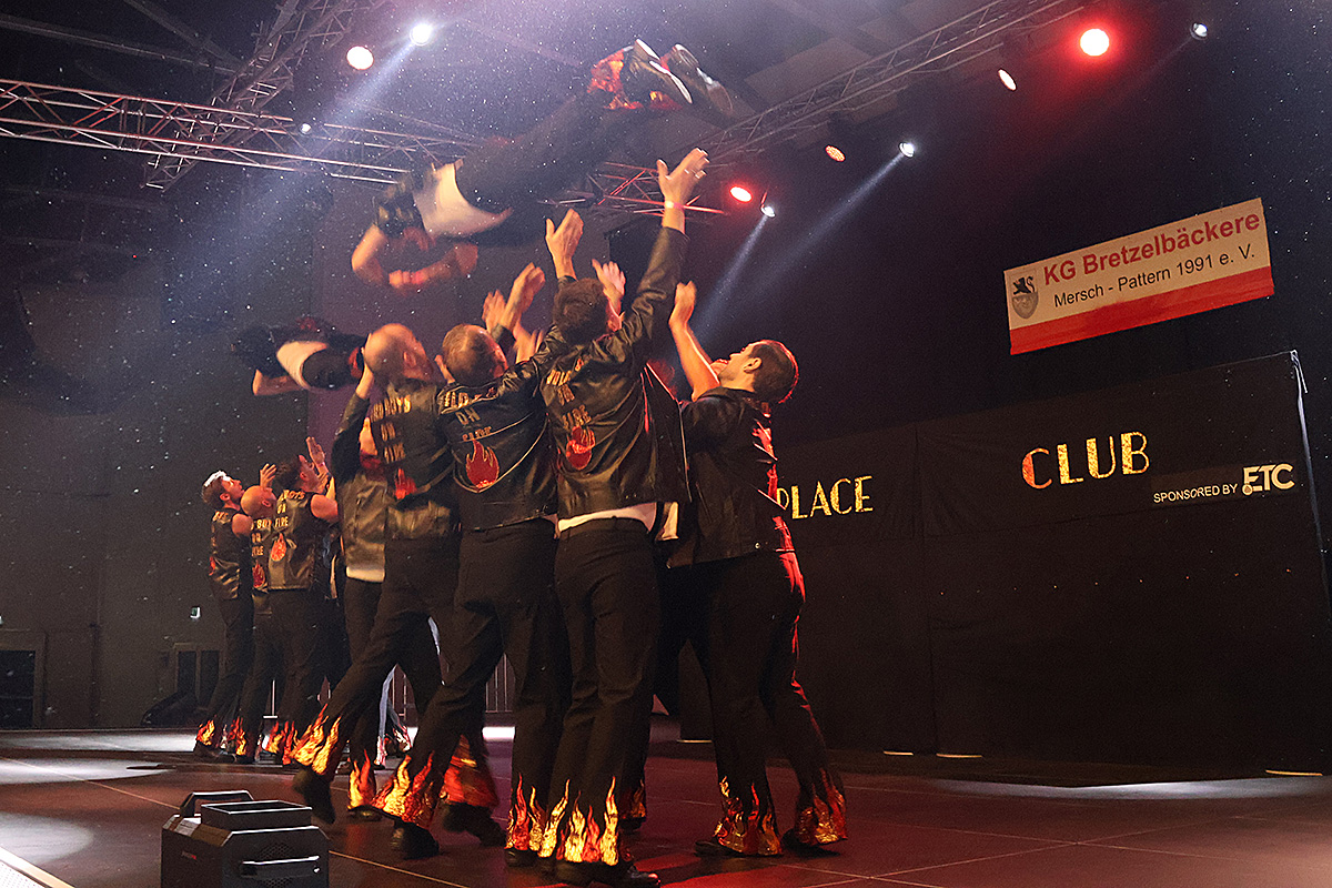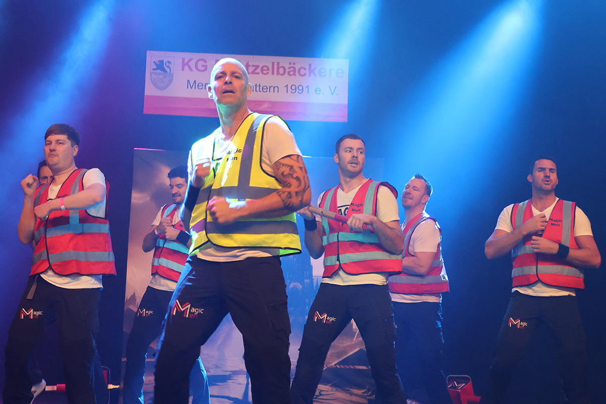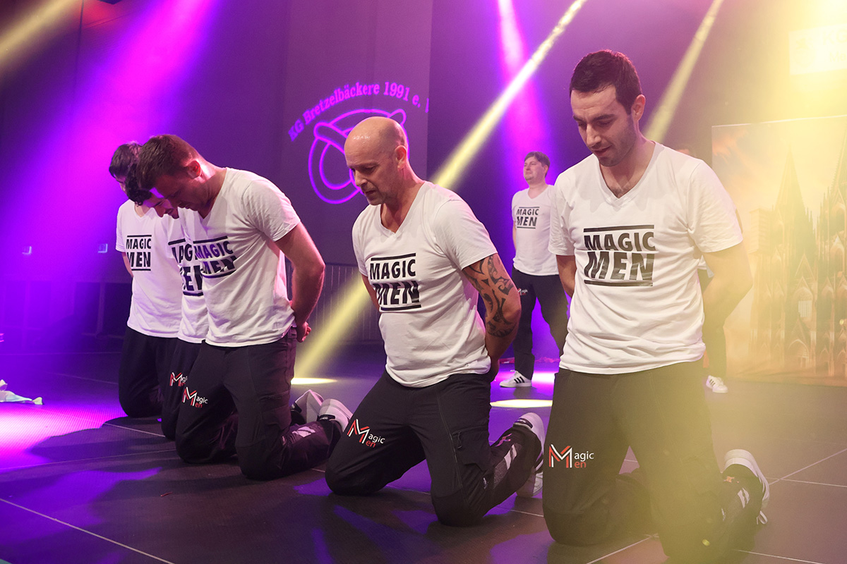 Für zusätzliche Unterhaltung sorgten in den Pausen zwei Showeinlagen der Kategorie Männerballett. Die „Wild Boys“ aus Mersch Pattern und die „Magic Men“ aus Euskirchen sorgten trotz einiger für den Abend ungewohnt steifer Hüften für ausgelassenes Gejohle und gute Laune.