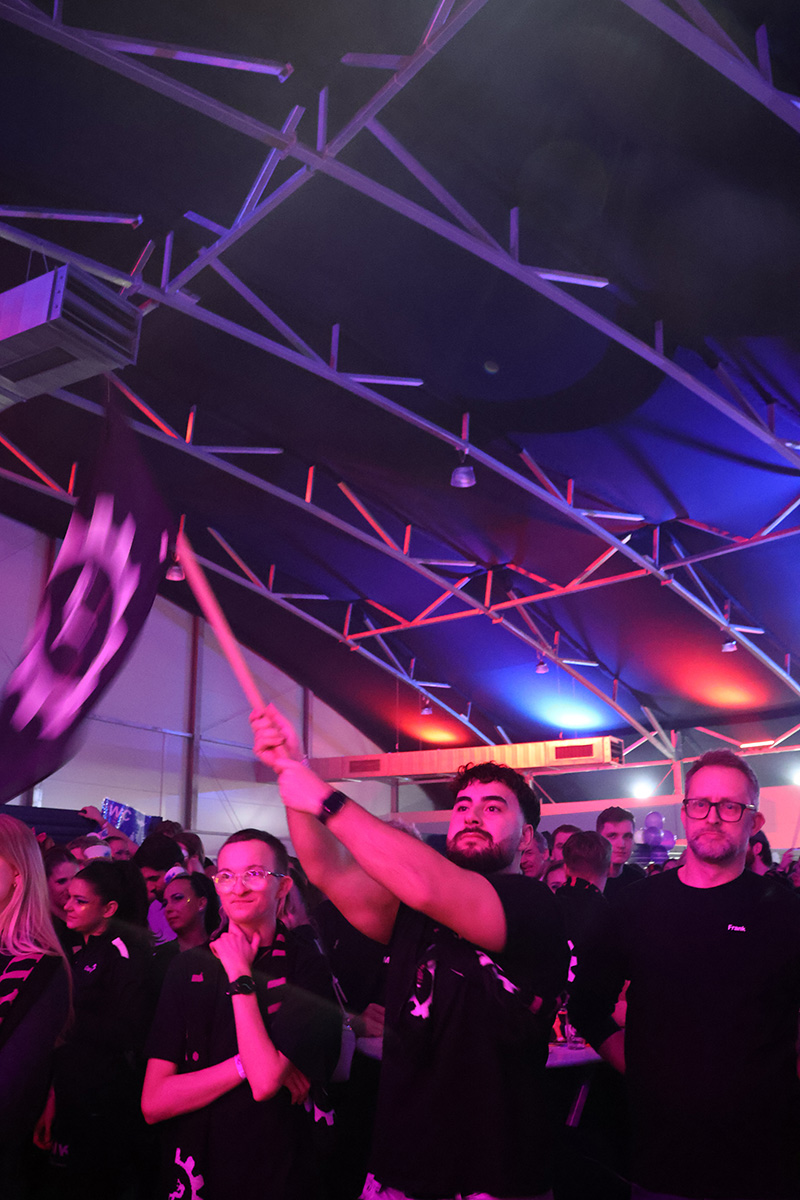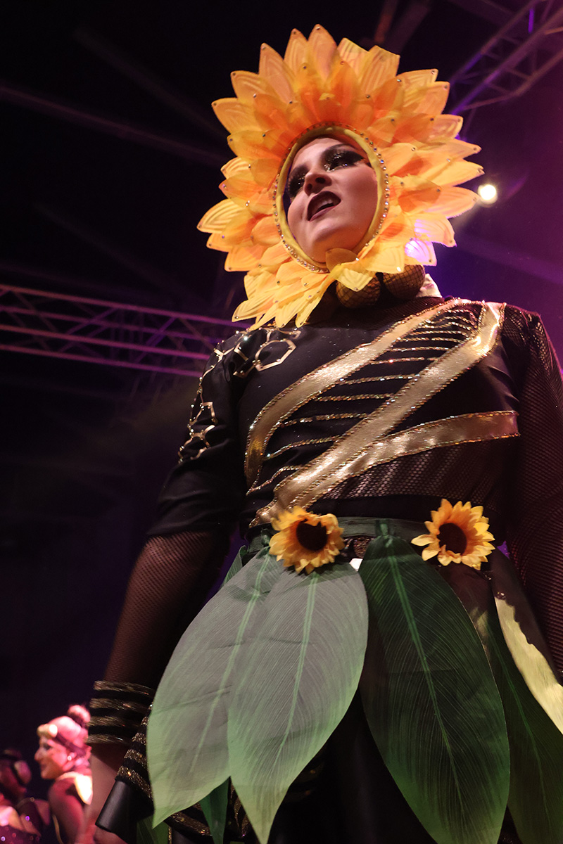 Nach der Tüdderner / Heinsberger Gruppe Taktlos genoss das Publikum ein wenig Dolce Vita, vorgetragen von den Lucky Stars der Jülicher KG Rursternchen. Die Polizei-Einsatzgruppe Girls United der KG Böschremmele Hambach machte sich unterdessen kurzzeitig auf die Suche nach Kontraband. Bei friedlicher Stimmung begnügten sie sich allerdings mit einem ausgiebigen Blick auf das Publikum von der Bühne aus. Nachdem der erste Bienenschwarm des Abends, die Pfattfööss der KG lott se loope Immenauweiler, sich eindrucksstark über zu wenig Lohn für ihre Arbeit beschwerten, wurde es kurzzeitig verrückt in der Muschel, als die KG Gevenicher Jekke stellvertretend durch Arabella einen Einblick ins Wunderland gewährte, in dem auch schon Alice an ihrem Verstand zweifelte. Glücklicherweise entstanden keine bleibenden Schäden. Der finale Auftritt der Däppstreet Nudeln, verwandelte die Muschel ein zweites Mal in einen brummenden Bienenstock.