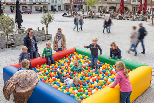 Die Uhr tickt: Am 11. Juni wird die Fußball-WM angestoßen. Passend hierzu hat der Event-Manager der Stadt Jülich Achim Maris eine außergewöhnliche Marketing-Idee entwickelt: Bis zum Finale am 19. Juli wird auf dem Jülicher Marktplatz ein Bällebad aufgebaut, in das die Fangemeinde eintauchen kann.