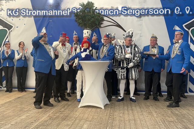 Die KG feierte jedoch nicht nur die Strohmanustaufe, sondern in diesem Jahr auch das Jubiläum 5 × 11 + 5 Jahre KG Strohmänner Selgersdorf. Im Jubiläumsjahr besteht das Taufdreigestirn aus Täufer Karl August Kunze, Ehrenvorsitzender der KG, sowie den Taufpaten Paul Gerd Wergen, ebenfalls Ehrenmitglied der KG, und Franz Cremer, Senatspräsident der Bretzelbäckerei Mersch-Pattern und langjähriger Senator der Strohmänner. Von ihnen wurde der neu ernannte Junge traditionell mit einem Schluck Korn begrüßt.