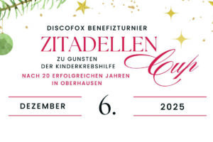Das TanzTreff Jülich veranstaltet am Samstag, 6. Dezember ein Discofox Benefizturnier. Erleben Sie mitreißende Stimmung, beeindruckende Tänze und jede Menge Lebensfreude für einen guten Zweck. Der gesamte Erlös geht an die Deutsche Gesellschaft für Palliativmedizin. On als ZUscahuen oder Tänzer, es zählt jeder Beitrag. Das Turnier beginnt um 15.30 Uhr, Einlass ist um 14 Uhr in der Bürgerhalle in Broich, Broicherstraße 5. Der Eintritt kostet 10 Euro. Die Startgebühr kostet 10 Euro/Person und Start. Anmeldungen, Infos und Karten gibt es…